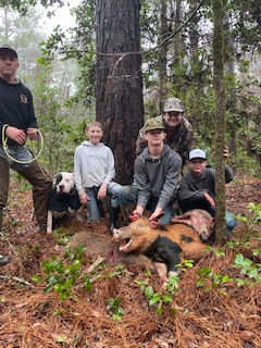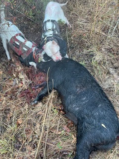 We have caught wild hogs all over the South. Our Dogos will find and subdue a very dangerous target no matter where they are. In the thick briers, mountains and bluffs where we mainly hunt. They are relentless in icy ponds, muddy summertime swamps, caves, rocks, cutovers, creeks and rivers, day or night. Conditions do not matter, only the job at hand.